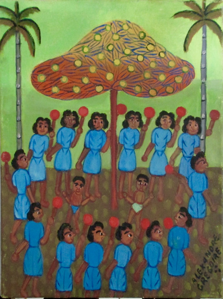 « Je m’efforce de peindre tout ce que j’ai vu, mes souvenirs, des sujets militaires, des raras, du vodou. Le sujet me vient parfois des rêves que je fais…Ma vie est une prière et la peinture est sa sœur …» (entretien de Alexandre Grégoire avec Michèle Grandjean Artistes en Haïti, Cent parmi d’autres, 1997)